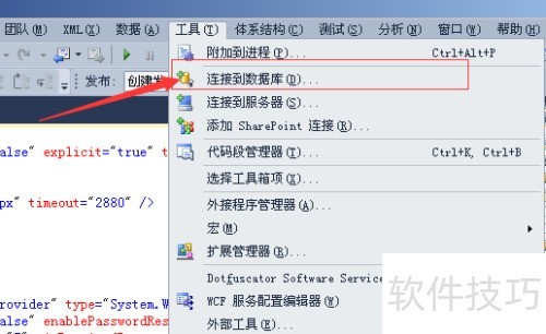 2、 点击工具菜单后,选择连接到数据库选项进行操作。
