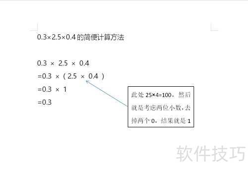 0.3×2.5×0.4可先算2.5×0.4得1,再乘0.3得0.3。