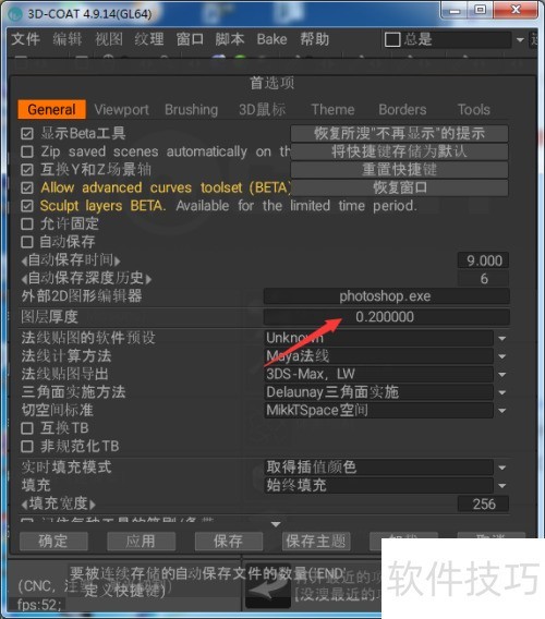 在3DCoatDX64中,将图层厚度设为0.3的方法如下:进入图层设置界面,找到厚度调节选项,输入数值0.3并确认,即可完成设置。