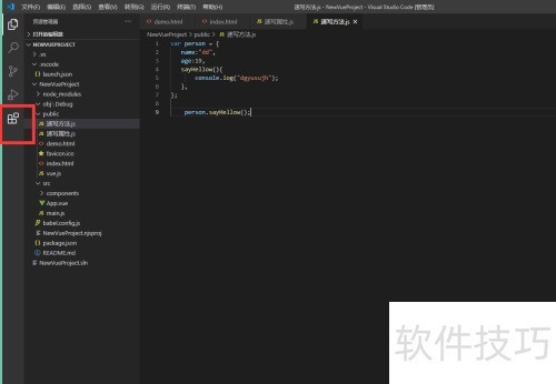 1、 启动Visual Studio Code,进入主界面后,选择左侧边栏的扩展选项。