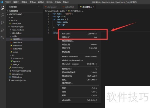 5、 进入代码界面后,鼠标右键点击,选择run code即可运行。