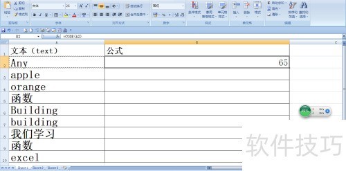 4、 按回车后函数返回65,表示文本Any首字符A的ASCII码值为65。
