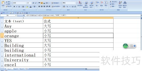 7、 通过IF函数与CODE函数结合,可轻松判断文本首字母的大小写情况。