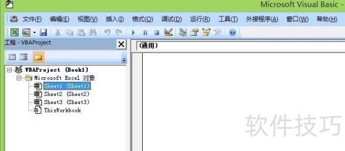 3、 请注意左上角的区域,通常显示sheet1、sheet2、sheet3,对应Excel下方的各个工作表。务必确认需要处理的数据位于哪个工作表中,然后双击该工作表名称,右侧便会打开一个空白的代码编辑区域,供后续操作使用。