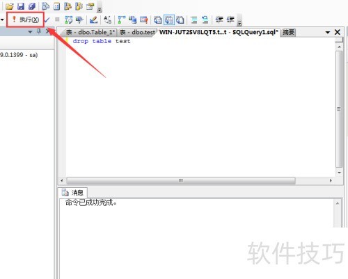 4、 输入 drop table 表名 命令,点击执行按钮即可完成删除操作。