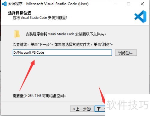 4、 接下来选择软件的安装路径,可根据个人习惯自定义,但建议避免系统盘(通常为C盘),我选择的是D盘,随后点击下一步继续操作。