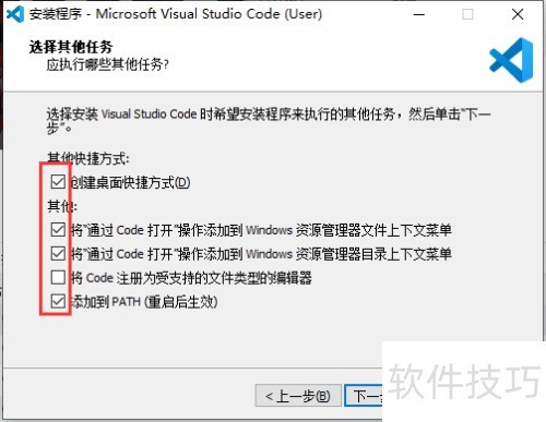 9、 将Code设为默认编辑器,意味着所有文本文件都将用VS Code打开,若无异议,建议勾选此项以方便使用。