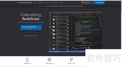 1、 访问VS Code官方网站 https://code.visualstudio.com/,页面会直接显示下载选项。由于当前系统为Windows,网站自动识别并默认提供Windows版本的下载按钮,用户可直接点击下载安装程序,操作简便快捷,适合各类开发者快速上手使用该编辑器。