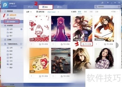 2、 下载并安装PP助手Win 2.0版,连接后进入影音图铃功能,选择壁纸即可。