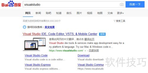 1、 搜索百度Visual Studio,查看结果并点击进入。