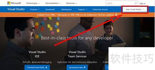 2、 点击免费获取Visual Studio开始下载安装。