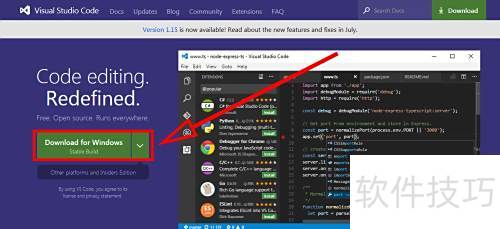 3、 点击VS Code下方的下载按钮进行获取。