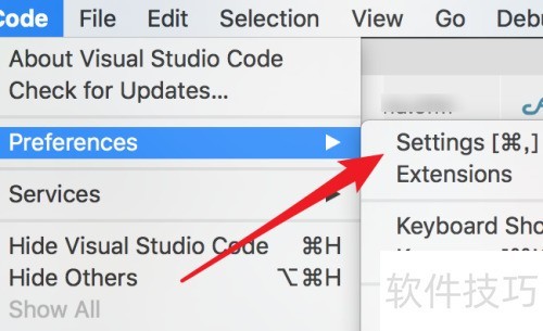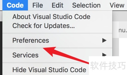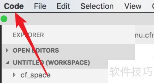 1、 启动VS Code,选择顶部菜单中的Code选项。
