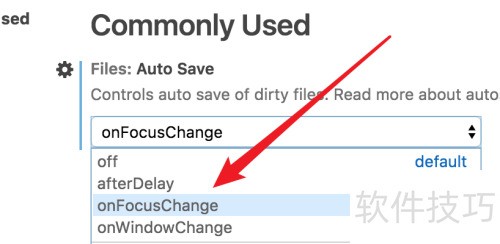 7、 我们选用第三项设置,文件编辑后,一旦切换焦点,例如转去编辑其他文件,便会自动保存。