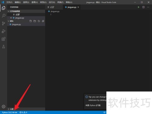 5、 配置后VSCode可自动识别Python并启动解释器。