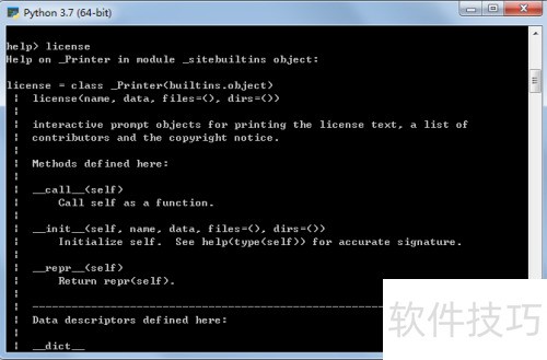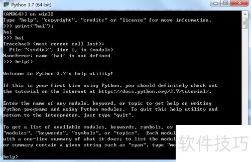 6、 在提示符后输入help()命令以获取帮助信息。