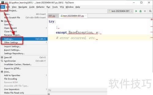 1、 启动PyCharm,依次点击菜单栏的File和Settings选项进入设置界面。