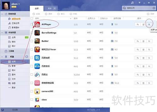6、 安装完成后,连接设备至PP助手,进入设备栏的,找到万能视频播放器,点击右侧放大镜图标,随后打开文档即可。