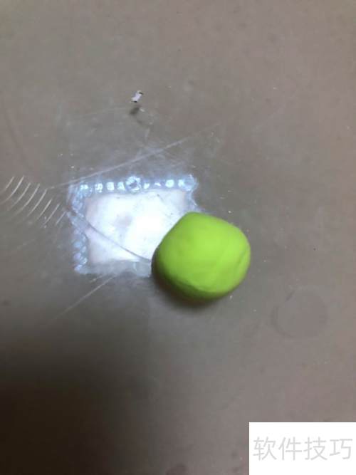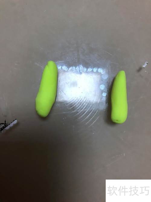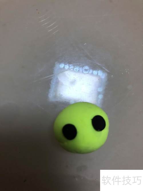 1、 取绿色彩泥搓成圆球,再用黑色彩泥搓两个小圆球贴在上面。