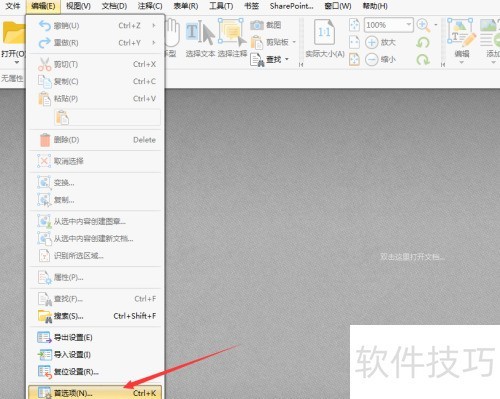 1、 在菜单中选择编辑,从下拉选项里点击首选项。
