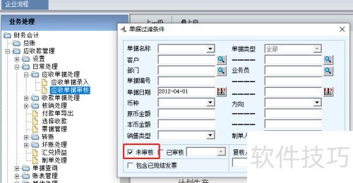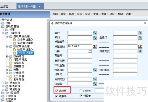 6、 处理并筛选未审核的收款单据,完成审核流程。