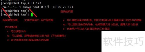 7、 可通过ll或ls命令查看文件或目录权限,具体所示。