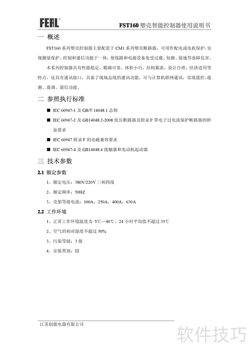 FST160塑壳智能控制器使用说明书1.0详细说明产品操作步骤与常见问题处理方法,帮助用户正确使用设备,提升操作效率与故障应对能力。