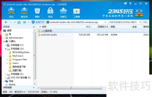 4、 将Android Studio 2.0解压至D盘本地磁盘即可完成安装。