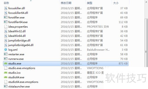 5、 进入Android Studio安装目录的bin文件夹,双击运行其中的Studio.exe程序即可启动。