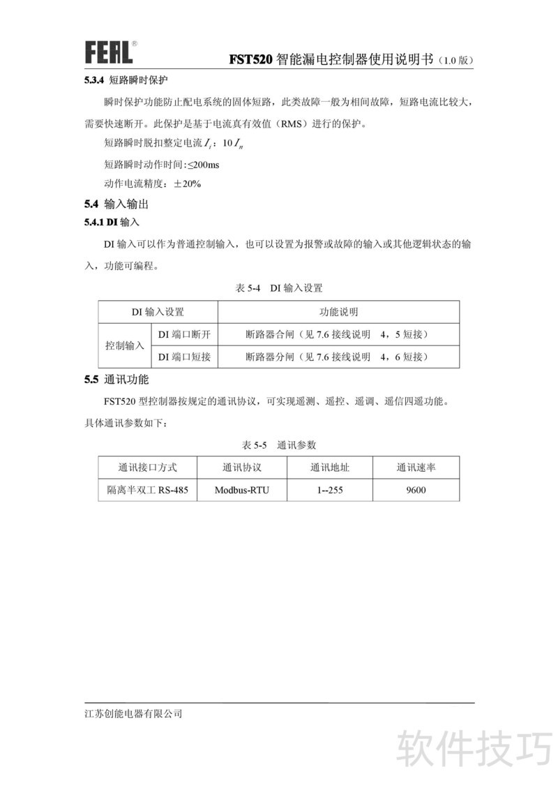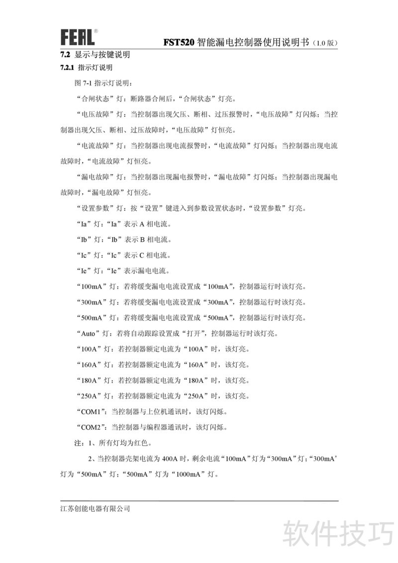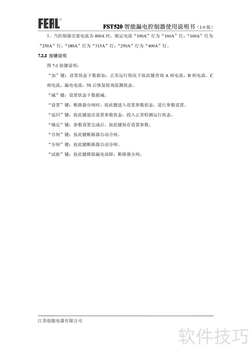 、 本文是FST520智能漏电控制器使用说明书1.0,详细说明产品操作步骤与常见问题处理方法,帮助用户正确使用设备并快速排除故障。
