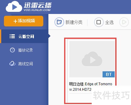 5、 下载BT种子后,点击迅雷云播页面的添加视频按钮即可。