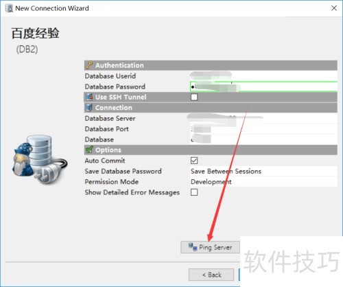 5、 输入数据库用户名、密码、数据库名及地址后,点击下方按钮进行连接测试,具体操作所示。