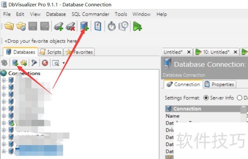 1、 启动DbVisualizer后,点击界面中的添加数据库按钮,具体位置见下图所示。