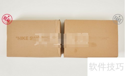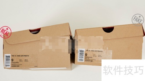 1、 从上方俯视鞋盒,两者外观几乎一致,仅右侧仿品颜色略深。侧面标签的位置及整体细节上,真假鞋盒均无明显差异,难以分辨。