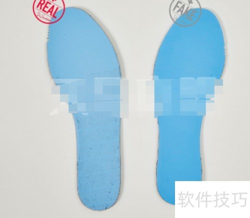 6、 正品鞋垫为深蓝色,镂空孔整齐清晰,长度明显超过仿品,背面因带有胶质粘贴层,呈现发白且略显脏污的痕迹。