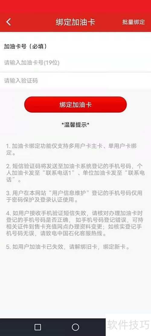 打开中石化加油应用,进入加油卡页面完成绑定后,点击查询余额,油卡金额将清晰显示在列表中。