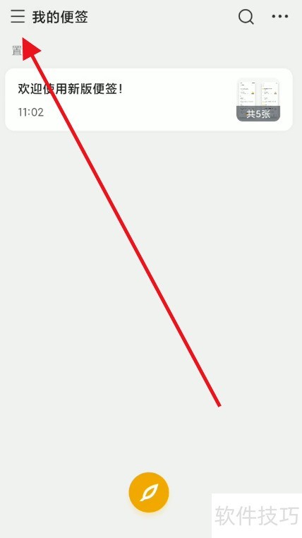 1、 打开WPS便签,点击主界面菜单栏图标。