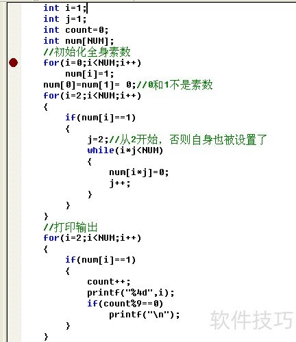 9、 采用埃拉托斯特尼筛法,从最小的质数起,逐个标记其倍数为非质数,直至达到设定上限。按此思路简化实现,具体代码如下所示。