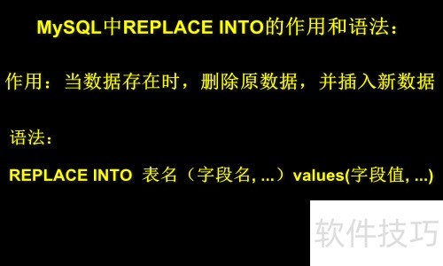 MySQL中replace into用于插入或替换数据,若主键或唯一键冲突则先删除再插入。