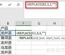 4、 由于产品名称前缀各异,无法统一从开头替换,否则会导致所有名称相同。只需修改茶字,因此从第3个字符开始,仅替换一个字符即可。