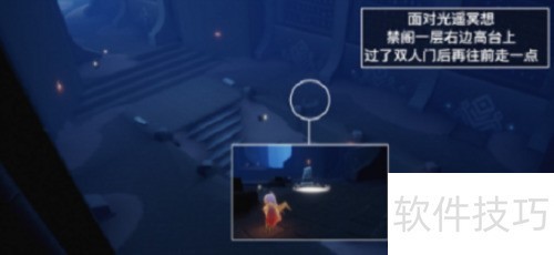 4、 在禁阁一层通过双人门后,于前方石碑前的光圈处盘坐冥想。