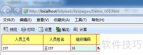 11、 报表从数据源中提取出首位员工的工号、姓名、组织编码及组织名称,仅获取一条记录,生成的源码文件为纯HTML格式。