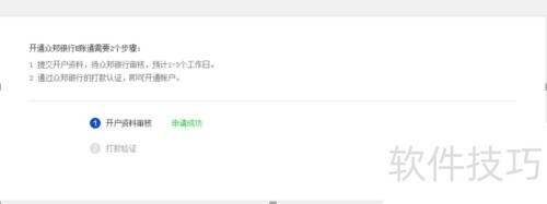 2、 审核通过后,系统将开通操作后台,工作人员将指导您开设企业电子账户。