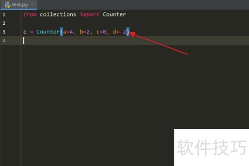 4、 输入c = Counter(a=4, b=2, c=0, d=-2),然后按下回车键确认执行。
