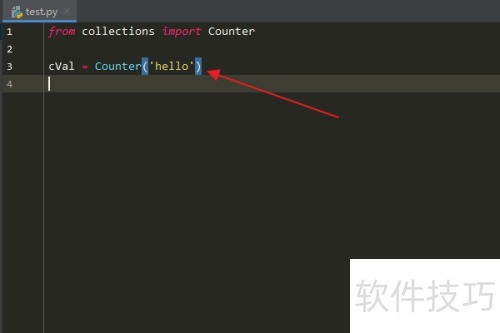 3、 在Python文件的编辑区域中,输入from collections import Counter,以导入collections模块中的Counter类,用于后续的数据统计操作。