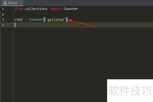 3、 在Python代码编辑区域中,输入from collections import Counter,以导入collections模块中的Counter类,用于后续的数据统计操作。