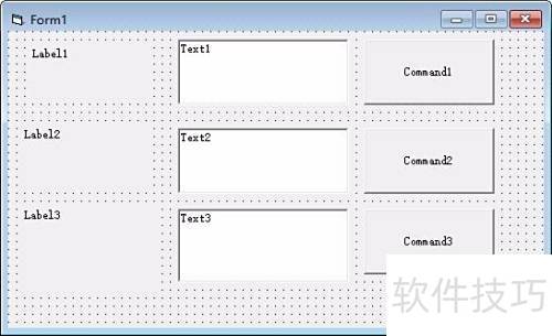 1、 在VB窗体中依次添加标签、文本框和命令按钮,布局所示。