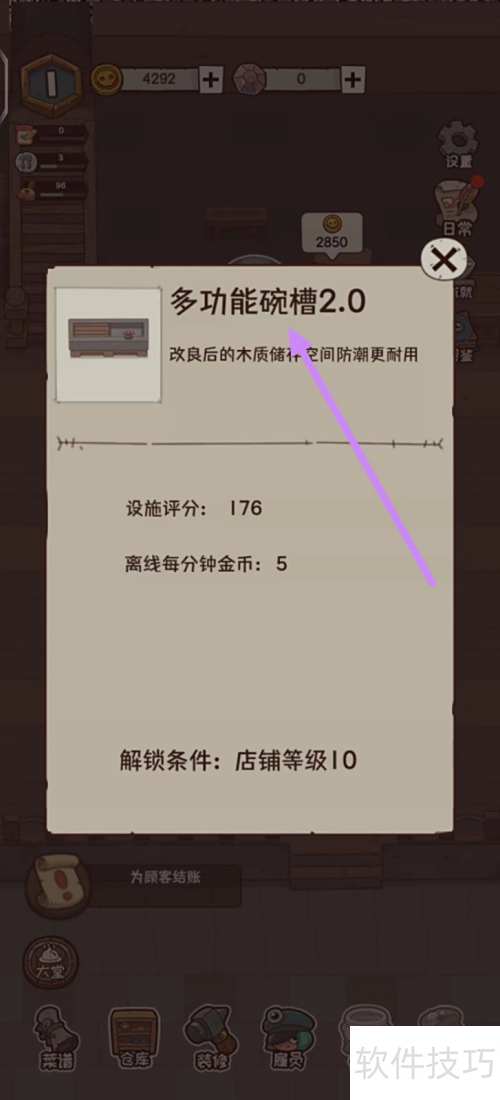 3、 进入后厨界面,点击多功能碗槽2.0即可完成操作。