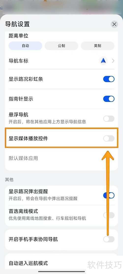 3、 在导航设置里,找到并开启显示媒体播放控件的开关。