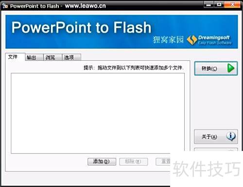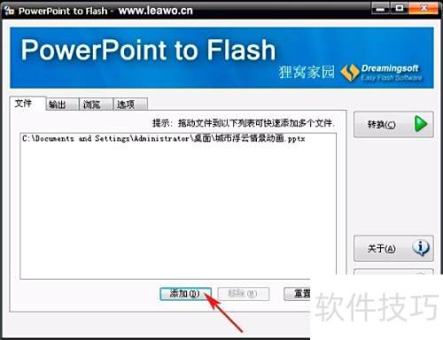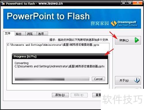 6、 将所有标签选项配置完成后,返回项,点击右侧按钮,即可开始将PPT动画转换为Flash,生成SWF文件。